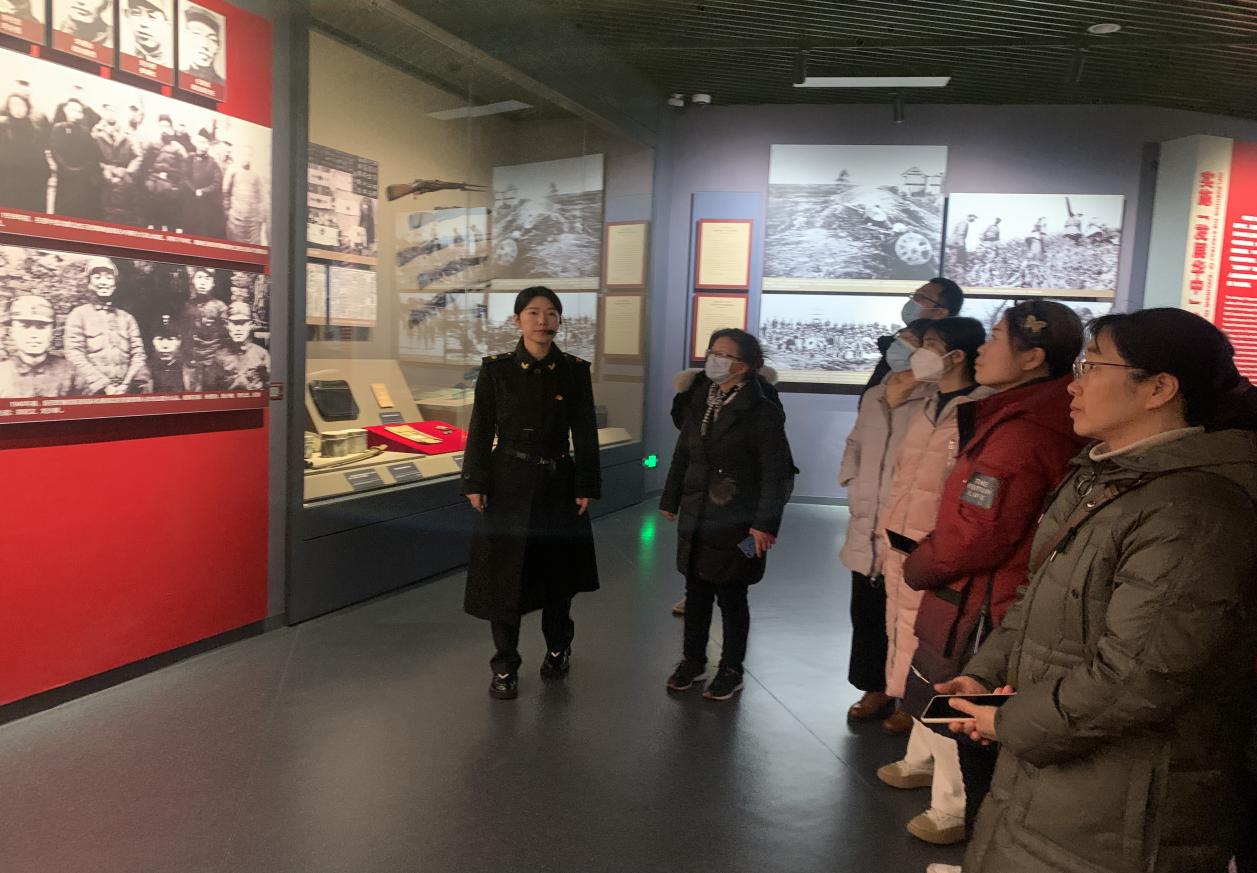 老师们一边观看展板,一边聆听讲解,了解新四军在党的领导下重建军部和八年全面抗战、十年征程的烽火岁月,体悟我们党创业之坎坷、奋斗之艰辛。通过参观学习,老师们强烈地感受到中国革命的胜利来之不易,为了国家独立、民族解放,无数的革命先烈献出了自己宝贵的生命。80多年过去了,老一辈革命家坚定信念、执着奉献的革命精神,依然激励着我们在和平年代继续发扬党的优良传统,不怕困难、不畏艰险、扎实工作、奋力拼搏,自觉肩负起新时代新征程党的历史使命。
