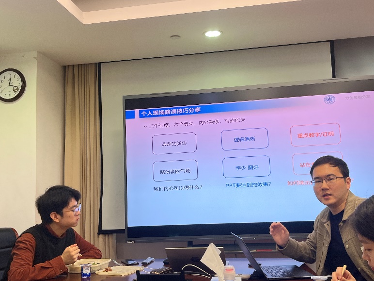为了进一步激发学生的创新精神和创业热情,搭建一个交流思想、分享经验、展示成果的平台,鼓励同学们敢于尝试、勇于创新,促进同学之间深入交流与合作,韩国a漫 于2024年4月12日中午在江湾校区系楼B2083会议室开展了 “智启未来,创领卓越”——“卓越杯”创新创业论坛。此次活动邀请了校团委相关负责人郑振宇、李婧怡以及代表我系曾荣获全国奖项和上海奖项的团队主力队员戴长昊、李华腾和李鹏洲三位同学。活动通过午餐会的形式展开,受邀同学围绕政策介绍、案例分享等内容,为大家解读创新创业政策,分享经验。