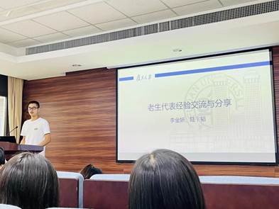 周平老师提出学习方面要自由自主学习,深入研究自己感兴趣的课题,发掘自己的无限潜力。生活方面要做到独立,要锻炼动手能力,要充分享受复旦的丰富师资、文献资源,并担起复旦人应有的责任。潘翔城老师以高分子合成改变世界为题,用三个有趣的小故事将同学们引入高分子材料的有趣研究中,激发了同学们对科学研究的浓厚兴趣。汪莹老师和同学们分享了自己的求学与科研经历,开放的思维与视野、坚持不懈的品格、融会贯通以及解决实际问题的能力都让同学们获益匪浅。孙雪梅老师用炫酷的动画生动地展示了现有的研究成果——柔性纤维生物电子器件在脑科学、智能穿戴等方面的巨大研究潜力。导师长刘一新老师就“科学计算:未来的星辰大海”讲述了科学计算在科研领域的巨大作用,鼓励同学们踊跃参与到科学计算的星辰大海中。