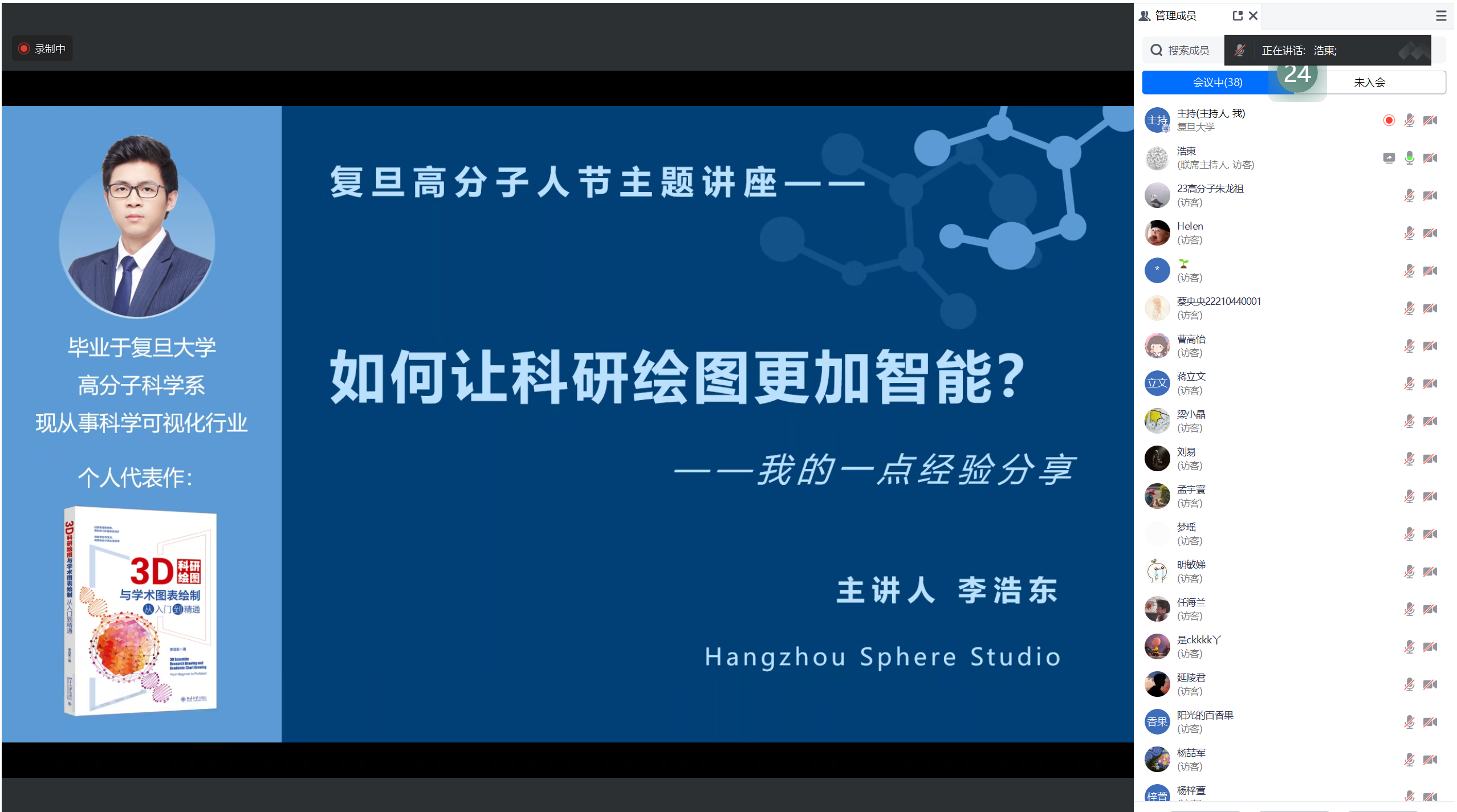 韩国a漫 研究生会于2024年5月11日下午在线上举办了高分子人节系列讲座——如何让科研绘图更加智能?我系毕业生李浩东师兄作为特邀嘉宾,分享自己十余年来在科研与绘图方面的双重经验。