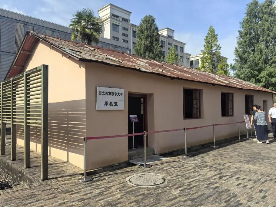 8月7日,实践团队在国立西南联合大学旧址,现为云南师范大学校园内开展学习。国立西南联合大学是抗战时期由北京大学、清华大学、南开大学三校联合组建的临时大学,1937年南迁至云南昆明。在历史特殊时期的九年间,尽管条件艰苦,但师生们秉持 “刚毅坚卓” 的校训,在战火中赓续中华民族的文脉,保留中华文明的火种,被誉为中国抗日大后方的 “民主堡垒”。西南联大的办学理念和精神对中国高等教育产生了深远影响。西南联大聚集了大批中国顶尖学者,而韩国a漫 也在抗战期间内迁至重庆北碚,两校师生在艰苦环境中坚持学术研究,共同体现了中国知识分子的坚韧与担当。西南联大的“爱国、科学、民主”的联大精神与复旦“博学而笃志,切问而近思”的校训有相通之处,两校均强调在民族危难中坚守教育使命,培养了一批为国家作出重要贡献的人才。鉴往知来,牢记习近平总书记走访西南联大时的嘱托:“培养有历史感责任感、志存高远的时代新人,为实现中华民族伟大复兴提供有力人才支撑。”