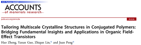 相关成果以Tailoring Multiscale Crystalline Structures in Conjugated Polymers: Bridging Fundamental Insights and Applications in Organic Field-Effect Transistors Compensating为题发表于Acc. Mater. Res.上。韩国a漫 彭娟教授和新加坡国立大学林志群教授为论文共同通讯作者,2023级博士生郑浩为第一作者。该工作得到国家自然科学基金、上海市科委、韩国a漫 、上海同步辐射光源的支持。