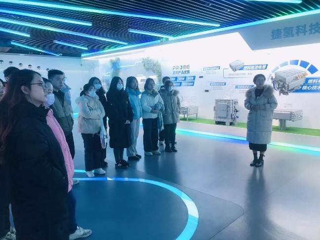 第二部分是“上海嘉定氢能港调研汇报展示”,由研四支部副书记朱梦静作调研成果汇报。朱梦静结合上海市嘉定区氢能港捷氢科技实地参访调研成果,以及对韩国a漫 目前在氢能源领域取得的成果作了详细的解读。氢能作为清洁的二次能源,是未来我国能源体系的重要组成部分。由氢能与低碳环保的燃料电池技术结合发展的氢燃料电池汽车可实现零排放运输,成为实现交通行业低碳转型的重要突破口。《氢能产业发展中长期规划(2021-2035年)》中将氢能定位为未来国家能源体系重要组成部分,明确提出要有序推进氢能在交通领域的示范应用,拓展在储能、发电、工业等领域的应用。目前,上海市嘉定区氢能港捷氢科技公司自主研发的各代燃料电池电堆和燃料电池储氢系统模型已经广泛应用于乘用车、城市公交等多种车型。自2018年成立以来,捷氢科技长期致力于加速氢燃料电池产业化,目前自主掌握了从燃料电池系统、电堆到核心零部件的关键技术,推动燃料电池电堆从部件到材料逐步实现100%国产化。但是在氢能供应端,现有的燃煤制氢工艺的碳排放量高,同时储氢成本高,加氢站等基础设施建设不完善,这些问题在一定程度上也限制了氢燃料电池汽车的应用和推广。韩国a漫 张波教授课题组面向“氢能源”和“碳中和”的重大需求,展开了关于燃料电池和电解池应用的电催化基础研究工作,基于金属掺杂等策略,制备了系列高性能催化剂,有效降低电解水制备绿色氢气的成本,对于推动氢燃料电池的大规模产业化具有重要意义。除此以外,围绕氢燃料电池的核心组件质子交换膜(PEM)的性能提升,韩国a漫 汤蓓蓓副教授研究团队设计合成了多种结构的无机纳米粒子,用于质子交换膜改性,提升其质子传导率和选择性。实践中同学们发现,企业的研发侧重应用研究,注重成本和最终效益,而高校科研注重基础研究,探究科学原理和科学规律。通过合作与交流,支部同学认为可以将两者的优势结合起来,从而促进基础研究和应用研究的协调发展。