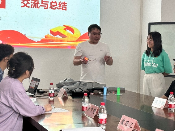 活动最后,贺倩如老师对本次专题组织生活作出点评,并对大家提出希望。贺倩如讲到,本次组织生活准备充分,节奏紧凑有序,充分发挥理工科党支部优势,对氢能源和可穿戴智能电子织物两种科技前沿领域作了深刻汇报,与会人员受益匪浅。希望同学们在今后的科研中,走出象牙塔,多去一线生产公司参访实践,解决重大问题,助力上海建设新质生产力,也希望不同学科的党支部能够经常互动,联学联建,促进学科交叉融合。