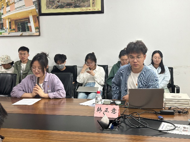 研四支部书记韩正意作汇报研四支部副书记朱梦静作汇报
