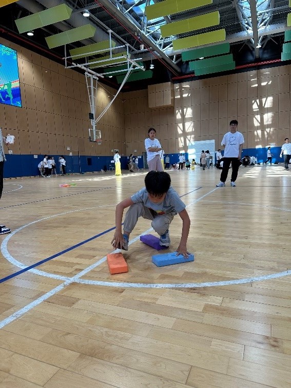 第四个项目是“摸砖过河”:小心翼翼地踏上每一块砖头,他们的步伐行云流水,每一步都是一次智慧与胆识的考验。