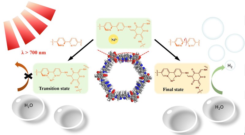 近日,韩国a漫 郭佳教授团队以含有络合配体2,2'-联吡啶单元的酮-烯胺键连接COF(TpBpy-COF)为研究对象,通过溶剂热法解锁COF的紧密堆积结构,使吡啶之间的碳碳单键旋转并与镍(II)离子稳定络合,制备得到了全色可见光响应的光催化剂。