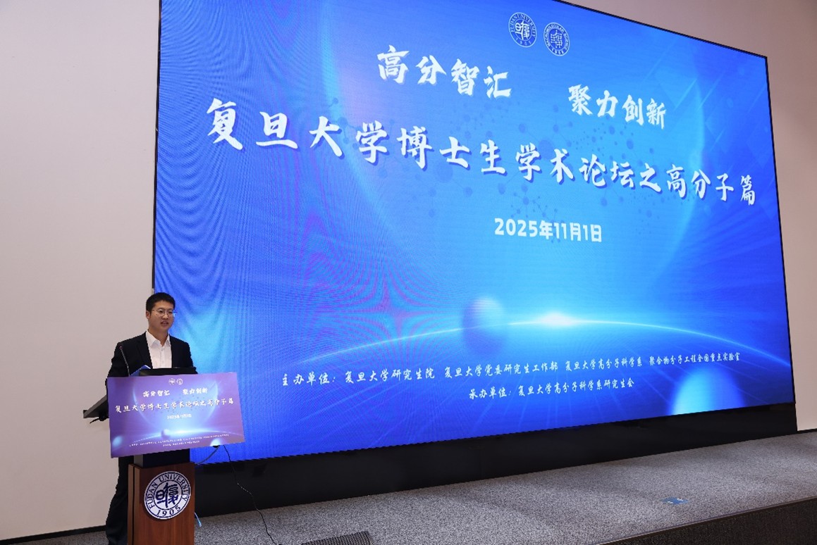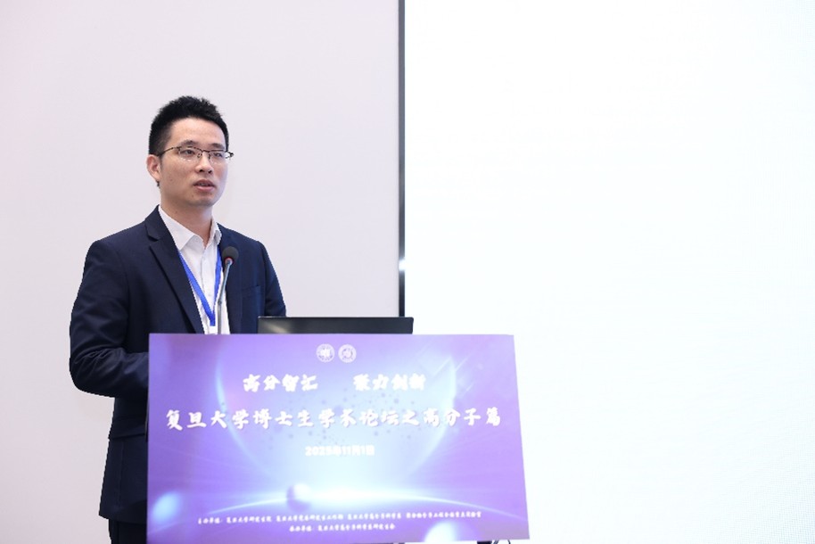系研究生会主席李春霖介绍论坛概况。本届论坛以“功能与智能高分子材料”“高分子与健康应用”“高分子结构与物性前沿”为核心方向,旨在为高分子及相关交叉领域青年学者提供高水平交流平台,推动学术思想与实践成果的深度融合。经过评审小组评选,最终12位同学脱颖而出进入口头汇报环节,22位同学入围墙报展示。