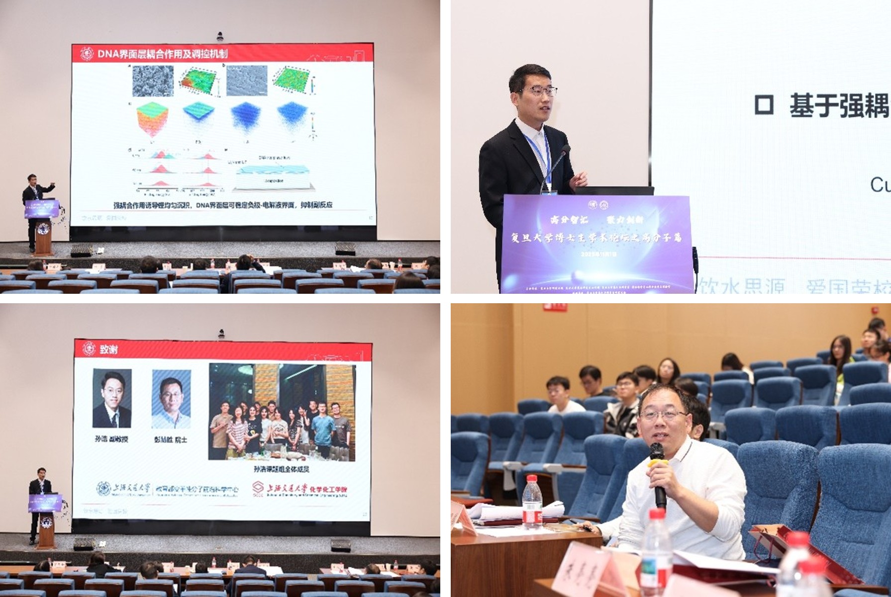 接着,孙浩老师为我们带来题为“聚合物分子工程构筑高性能转化型电池体系”的特邀报告。孙老师首先回顾了自己在复旦高分子系的求学经历及博士期间关于纤维能源器件智能化与集成化的研究工作。他的研究聚焦新型电化学储能体系,致力于通过正负极材料与反应机理的创新,实现电池能量密度与功率密度的协同提升。研究以“聚合物合成—界面调控”为核心思路,对锂离子吸附沉积及转化型正极的离子电子传输等关键过程进行精准调控,构筑出高比能、高功率且安全稳定的储能器件,展现出在前沿能源领域的广阔应用前景。
