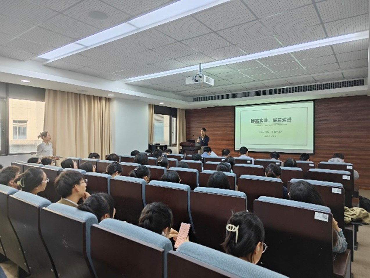 答辩会分为博士生与硕士生两个场次,候选人根据学号顺序依次进行个人陈述,气氛热烈且紧张。每位候选人满怀热情、自信满满地展示自己过去一学年在科研中取得的卓越成果,在学生工作、社会服务中的积极贡献,在文体活动、创新创业中的个人风采。他们中有刻苦钻研、勤学笃行的科研尖子,有踏实务实、与企业合作推进科研成果走向市场的产业达人,有热心公益、积极献血的志愿先锋,有心怀理想、自强不息的奋进青年。评委们针对候选人的陈述提出了犀利且富有建设性的问题,旨在进一步检验候选人的综合素质和应变能力。候选人则以沉稳的应对、敏捷的思维和扎实的知识储备,给出了令人满意的解答,赢得评委们和现场同学们的认可。