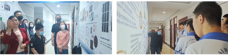 来访者在相关老师和博士后的带领下参观了科研大楼各楼层走廊展板,了解到实验室各研究课题组围绕国重室的四个研究方向开展的具体研究工作、以及最新科研进展,使同学们在浓浓的科研氛围中感受到科研的力量。