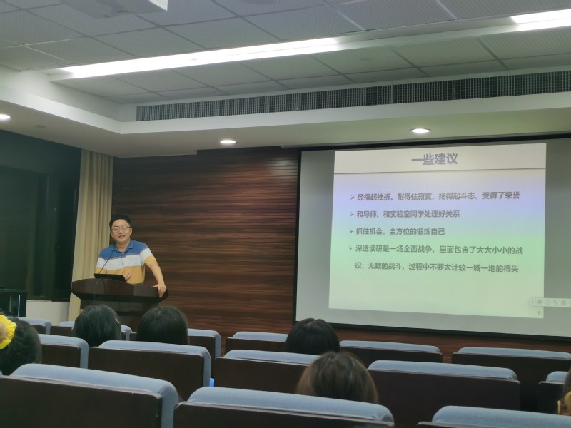 接着,冯雪岩老师结合个人经历为全体新生分享了自己的科研心得,并为广大新生提出宝贵建议。冯老师强调,作为一名研究生新生,首要任务是正确理解研究生身份,树立对研究生生活的正确认识,完成内心态度的调整。强调在研究生阶段重视学习的重要性,并鼓励同学们不要将视野局限于某一特定领域,积极关注跨学科领域,持续学习多元技能。此外,冯老师还建议大家重视培养个人社交能力及统筹协调能力,妥善处理与同学们的关系,培养健康的人际关系,合理规划个人时间,努力成长为全面发展的复合型人才。