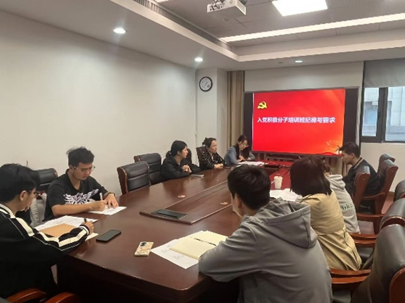 2024年10月8日下午,第十一期入党积极分子培训班开班仪式暨党史主题教育在系楼B2083会议室举行。经过本研各党支部选拔推荐,共有9名入党积极分子参加此次培训班,系党委副书记贺倩如、研工组长黄晔出席活动,会议由衣芳慧同学主持。