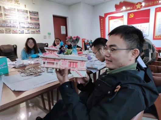 接下来的手工乐园部分中,天安门、天坛、湘西吊脚楼等建筑模型让我们感悟中国建筑的美,南湖红船模型让我们重温伟大共产党的诞生,巨大的帆船模型带着我们的梦想起航。除此之外,拼豆豆、马赛克花瓶等制作也在大家充满魔法的手中变出,甚是好看。只见同学们忙的不亦乐乎,忘我的投入,欢声笑语充满整个房间,不一会儿功夫,各种模型被心灵手巧的同学们一一制作出来。