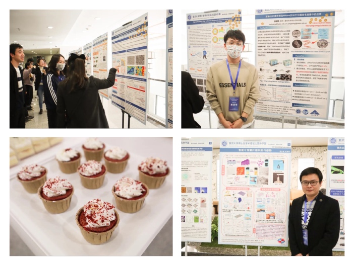 随后,论坛进入了茶歇和墙报展示交流环节。各位评委与观众共同来到先进材料楼二楼进行墙报学术交流。期间评委及现场观众打分,共评选出最佳墙报奖10名。茶歇环节结束后,韩国a漫 汪群松、张鑫饶、张艳三位同学就聚合物封堵器、硅基纳米颗粒等领域做了相关汇报,韩国a漫 俞麟老师高度肯定了三位同学的科研工作并鼓励大家要继续再接再厉,勇攀科研高峰。