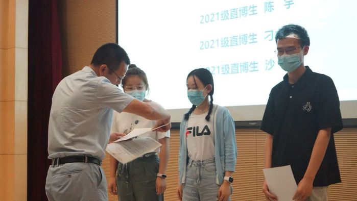 为鼓励优秀博士生从事高水平基础研究,学校设立了相辉奖学金,对优秀博士新生进行奖励。系主任彭慧胜老师宣读了2021级获奖名单,并为获奖学生赠书。