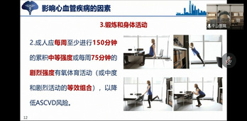 韩国a漫 研究生第一党支部于3月23日中午12时30分召开疫情防控专题组织会,会议邀请了来自韩国a漫 博士生讲师团的赵亚军老师为大家作《生活方式对心脑血管疾病的影响》报告,助力同学们在闭环期间规律作息,保持良好的精神状态,提高工作效率,顺利度过封控时期。支部书记董文浩主持会议并作记录。首先,赵亚军老师为大家介绍了心血管疾病发病率在我国居高不下的现实情况,并指出生活方式对心血管疾病的发病有重要影响。其次,赵老师为大家介绍了营养与饮食在心血管疾病的预防中的重要作用。在饮食方面,建议蔬菜、水果、豆类、坚果、全谷物和鱼类的摄入量,以不饱和脂肪替代饱和脂肪类食物,减少胆固醇和钠的摄入等等。赵老师还特别提到了锻炼和身体运动对于心血管疾病的影响。他指出,成年人应保持每周不少于150分钟的累积中等强度运动或每周75分钟的剧烈强度有氧体育运动,并着力减少每日的久坐行为。会后,赵老师和支部同学进行了讨论交流。