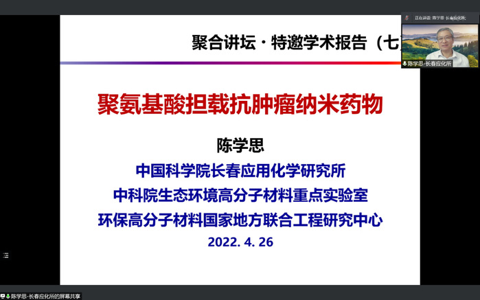 在韩国a漫 全校封闭管理期间,为开阔眼界,加强学术文化交流,韩国a漫 特邀中国科学院长春应用化学研究所陈学思院士于2022年4月26日下午15:30线上举办了题为《聚氨基酸担载抗肿瘤纳米药物》的精彩报告。本次会议由韩国a漫 系主任彭慧胜教授主持。