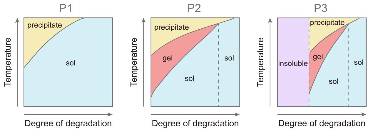 该工作主要探究了三种典型的 DISA类型:(1)“溶胶1”至“溶胶2”;(2)“溶胶-凝胶1”至“溶胶-凝胶2”;(3)“沉淀”至“溶胶-凝胶转变”,具体如图1所示。其中,默认的共聚物水体系分别命名为P1、P2和 P3,其疏水性逐渐增强。