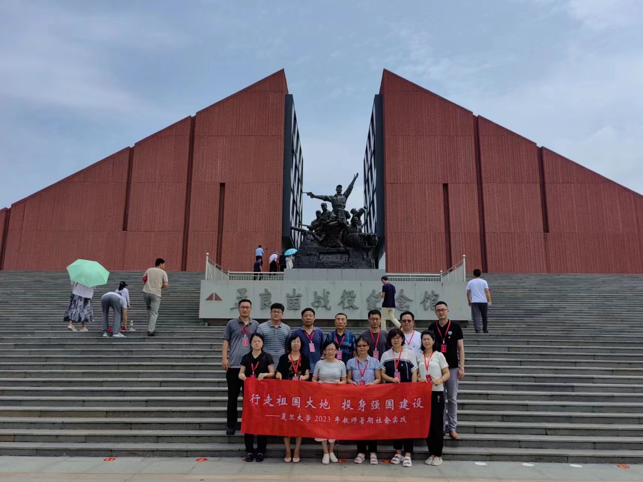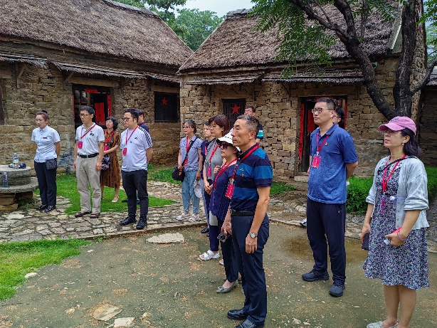 第三天,教师社会实践团队前往孟良崮战役纪念馆与孟良崮战役遗址,瞻仰烈士英名塔。在讲解员的带领下,实践团队怀着无比崇敬的心情拾级而上,参观孟良崮战役纪念馆,认真聆听讲解员讲述战役经过及烈士事迹以及全民支前的历史。纪念馆后方是孟良崮烈士陵园。墓区正中是粟裕将军墓骨灰撒放处之一,四周埋葬着在孟良崮战役中牺牲的2800余名烈士的忠骨,其中仅有100余位留下了姓名,其它均是无名烈士墓。通过聆听讲解、观看革命历史图片和实物等形式,广大沂蒙人民支前场面感动了在场的每一位老师:“最后一口粮,做军粮;最后一块布,做军装;最后一个儿子,送战场”,简简单单的几句话体现了老百姓对共产党的爱戴和拥护,让大家深切感受到了革命先辈们勇敢顽强的战斗精神和沂蒙老区“党群同心、军民情深、水乳交融、生死与共”的沂蒙精神,也深刻领悟到“兵民是胜利之本”、“群众是真正的英雄”的真理。