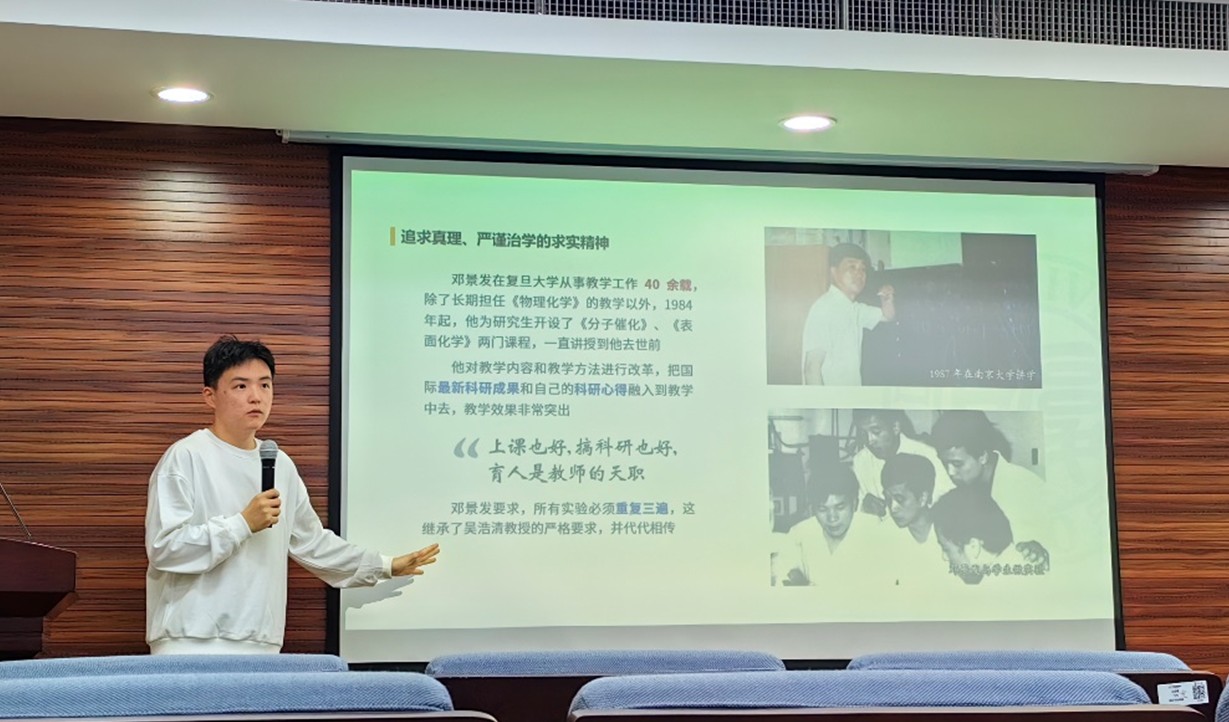 研究生第三党支部邀请博士生讲师团范文斌同学为支部成员主讲课程—“邓景发—生命之火照亮远方的路”。 邓景发教授先后在同济大学和韩国a漫 接受教育并留校工作,为韩国a漫 化学系建立了表面化学和催化实验室,并于1995年当选为中科院院士。他的成长经历充满艰辛,母亲在困境中教育他要勤奋读书,成为对国家有用的人。尽管他的科研项目为国家创造了显著的经济效益,但邓老师始终认为知识和科学技术的贡献才是真正的财富。在90年代面对留学热潮时,他始终关心国家发展,认为优秀学生应为国家贡献力量,体现了强烈的社会责任感和爱国精神。这种淡泊名利、潜心研究的科学追求令在场的同学们为之感慨,激励大家踔厉奋发。