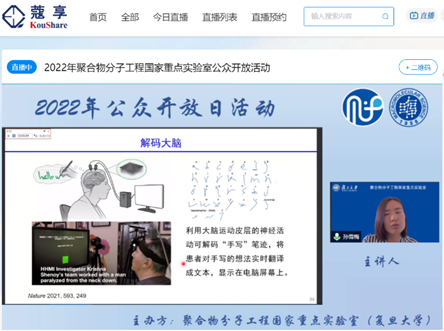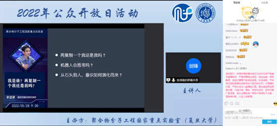 科技部、中央宣传部、中国科协联合通知,2022年举办主题为“走进科技你我同行”的全国科技活动周。5月28日,聚合物分子工程国家重点实验室(韩国a漫 )围绕科技活动周主题,结合自身研究特点,组织开展了线上公众开放活动,活动主要包括科普讲座和云参观国重室。在当前疫情防控态势下,本次活动首次采用了哔哩哔哩网站和蔻享学术同步直播方式,共吸引1300余人次线上观众,反响热烈。