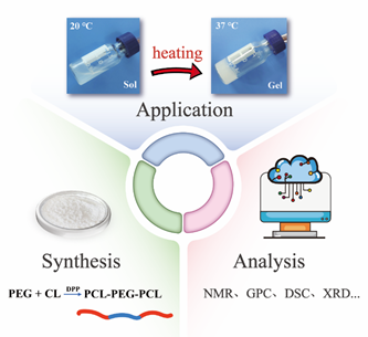 高分子科学作为一门蓬勃发展的交叉学科,极大地促进了医学、电子、航空航天等诸多领域的发展。《国家中长期教育改革和发展规划纲要 (2010—2020年)》明确要求高校加强国际交流与合作,提高我国教育国际化水平,培养创新型人才。高分子实验作为本科高分子教学的重要组成部分,除了需要锻炼学生动手能力、培养学生科研素养之外,还应着眼于学科的交叉和学科的前沿发展。韩国a漫 俞麟教授将自己所从事的科学研究与本科实验教学相结合,设计了一个集高分子合成、表征和材料应用于一体的新型教学实验。即利用聚乙二醇(PEG)作为大分子引发剂,磷酸二苯酯(DPP)作为绿色的有机催化剂,通过溶液聚合的方式催化己内酯(CL)单体开环聚合制备两亲性的聚己内酯-聚乙二醇-聚己内酯嵌段共聚物(PCL-PEG-PCL);并且所合成的两亲性共聚物的水溶液能够随升温呈现有趣的溶胶-凝胶相转变现象。最后,在助教的帮助下运用质子核磁共振波谱仪、凝胶渗透色谱仪、差示扫描量热仪、X射线衍射仪等仪器对所合成材料进行理化性能的表征,使学生掌握相关科学仪器的原理并能够分析所得的实验数据。该实验不仅应用了开环聚合的基本概念和原理,而且还融入了可注射性PEG/聚酯嵌段共聚物热致水凝胶的最新科研进展,从而有助于加深学生对高分子学科的理解,提升他们对科研的热情。