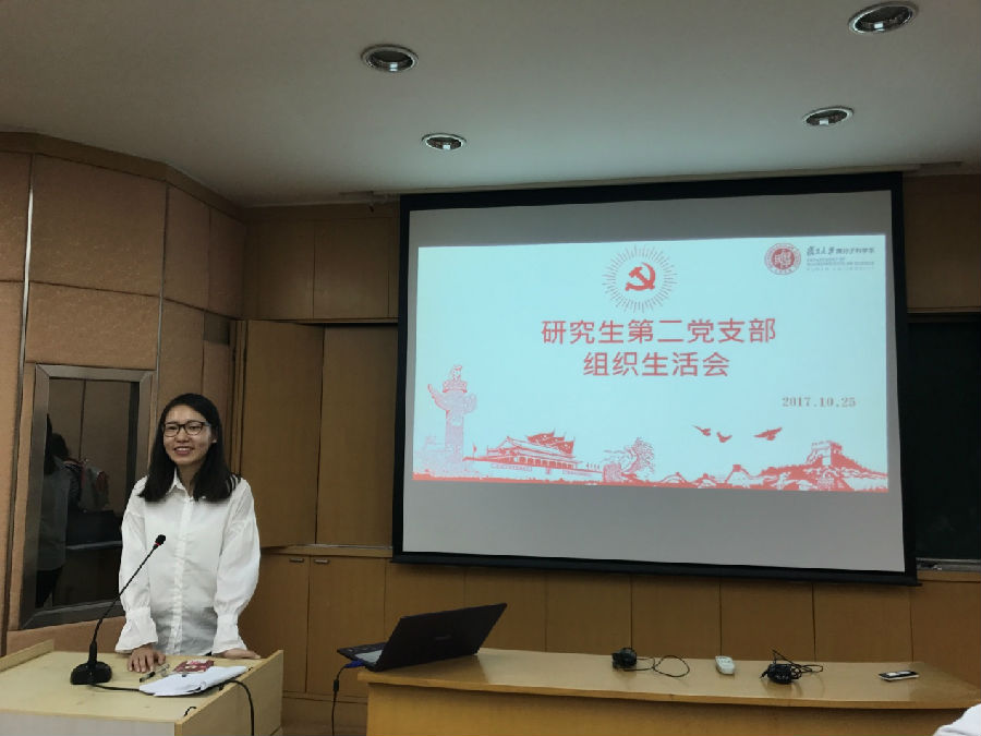 在学习党的十九大会议精神后,主持人带领大家讨论了如何做新形势下的合格党员,明确了新形势下的合格党员要做到政治坚定、自律自省、品德高尚、乐于奉献,做到不忘初心,永远跟党走。作为高分子研究生党员的一员,我们要将个人发展与祖国发展良好的结合起来,戒骄戒躁,沉下心来,用心科研,增强自身的服务意识与使命感。