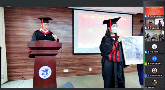典礼尾声,学位授予仪式分别在江湾主会场和邯郸分会场举行,彭慧胜老师、杨武利老师、冯嘉春老师分别为研究生毕业生和本科生毕业生拨穗。