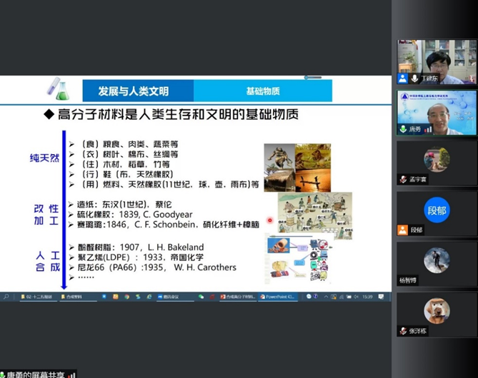 报告伊始,唐老师首先介绍了高分子材料的发展史,指出“高分子材料是人类生存和文明的基础物质”,此后以聚乙烯的工业化进程为例,进一步指出合成高分子材料的重要地位,即“合成高分子材料为社会发展提供不可或缺的物质基础”。
