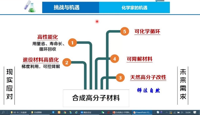 此次报告,唐老师从“既讲高分子又讲有机化学”的角度出发,围绕“退役材料合成高分子无法生态消融”这一主线,从“发展与文明”、“挑战与机遇”、“探索与进展”、“体会与感悟”四个方面为我们进行了深入浅出的阐述。