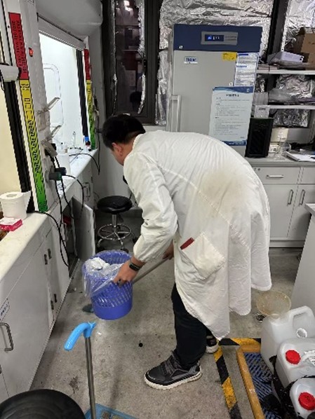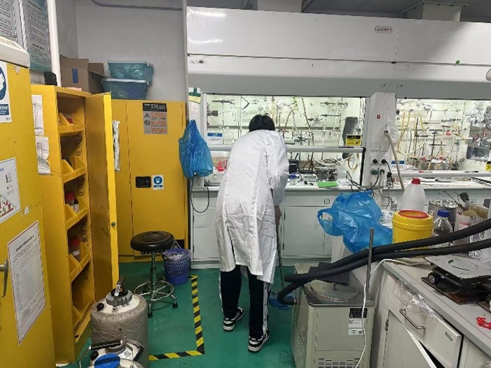 研究生第五党支部党员所在的多个课题组开展卫生清洁工作。同学们在整理和清扫过程中干劲满满,擦实验台、扫地拖地、整理通风橱,实验室很快呈现出焕然一新的面貌。安全是实验工作的基本保证,老师和同学们对危化品存放、仪器设备违规操作、气瓶安置与状态等进行了检查确认,严格排查了实验室安全隐患。在大家的辛勤努力下,实验室干净整洁,焕然一新,为同学们的科研工作营造了干净、整洁的实验环境。